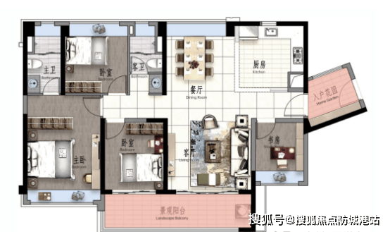 对流约140㎡4房2卫:采用LDK一体化联厅设计,将客厅、餐厅、厨房融为一体,打造开阔的公共空间,是亲朋聚会的理想场域。南北通透,空气对流顺畅,提升室内空气质量。客厅近6米超大进深,增加了空间的层次感和实用性。阳光入户花园设计,让生活多一份惬意,阔绰主卧套房配备270°景观飘窗,让业主在室内即可欣赏到优美的景观。