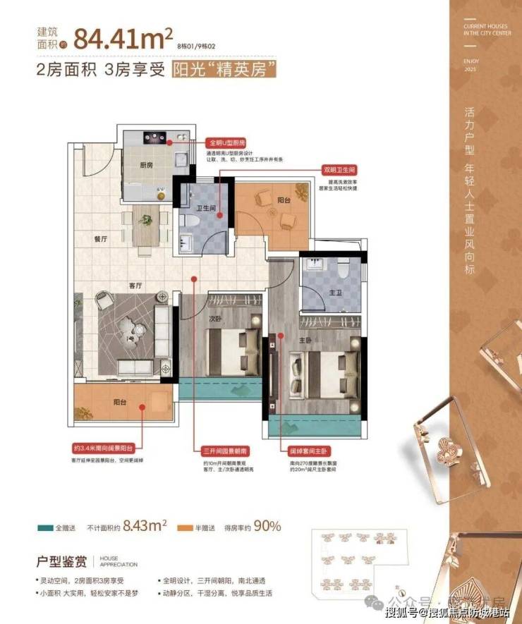 8座01户型:3房2厅2卫 建面约84㎡