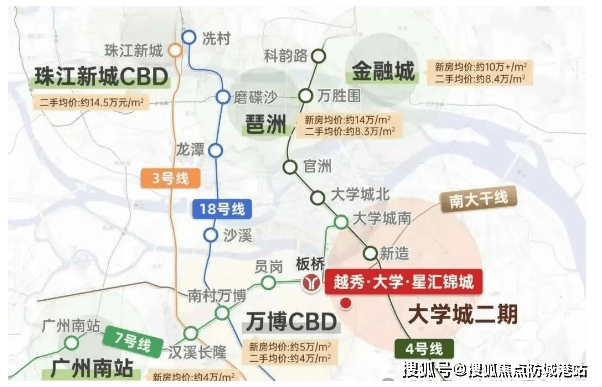 越秀·大学·星汇城地处琶洲以南,是国际创新城的核心区域,被正式纳入大学城二期整体规划版图。这一区域不仅是广州“南拓”战略的关键支点,更是连接大学城一期与南部产业新城的重要纽带。项目周边聚集了华南理工大学国际校区、暨南大学番禺校区、广州医科大学二期等多所高等学府,形成约20万师生规模的高知圈层,学术氛围浓厚,人文底蕴深厚。同时,该片区被定位为广深科技创新走廊的重要节点,承载着推动粤港澳大湾区科技创新与人才集聚的重要使命。随着大学城二期建设的持续推进,区域价值持续释放,越秀·大学·星汇城正站在城市发展的风口之上,享受政策、产业与人口三重红利。