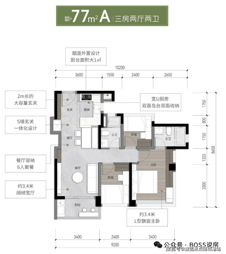 建面约88㎡ 三房两厅两卫(主力在售,使用率约135%)