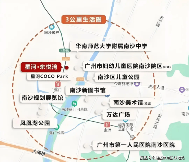 星河东悦湾落子于南沙蕉门河中心区,这里是南沙新区最早开发、配套最成熟的居住板块之一。项目周边聚集了南沙区政府、政务服务中心、规划展览馆等核心行政机构,意味着区域发展导向明确、公共资源优先倾斜。