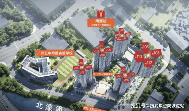 项目占据广州城市中轴线的黄金位置,贯穿天河北、珠江新城、广州塔等城市核心区域,资源荟萃,交通便利。双地铁交汇(2号线与广佛线南洲站C1口仅约80米),3站可达客村,5站直达珠江新城与琶洲两大CBD,让通勤变得轻松高效。同时,项目紧邻在建的海珠湾隧道,预计2026年9月通车后,将实现15分钟畅享珠江新城、琶洲、万博三大CBD生活圈,真正意义上实现"城央即世界"的生活愿景。