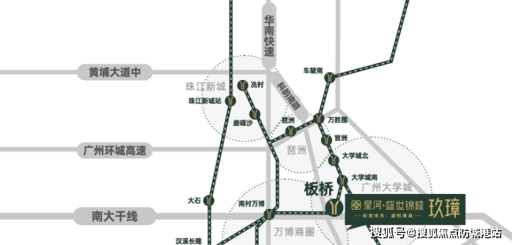 快速路:出门即可上南大干线,无缝连接万博和广州南站,通过多条快速路线可轻松畅达琶洲、金融城、珠江新城等核心区域。