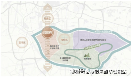 市二宫板块作为广州第一中轴南拓首站,历史底蕴深厚,是海珠经济、文化发祥地以及广州豪宅发源地。十三行时期,凭借临江、港口优势,中外贸易往来频繁,富贾云集。如今,该板块占据千年中轴正脉与珠江水脉黄金交汇点,一桥贯通珠江南北,坐拥两岸核心商圈,是连接海珠江南大道商圈群的重要枢纽,经济、文化、交通聚核,地位超然。未来,随着 “滨江岭南文化商圈” 与 “海珠新活力文商旅融合圈” 的规划推进,老城将焕发出新的活力。然而,近 10 年该板块无新盘入市,君曜府的出现,重塑了板块的居住价值。