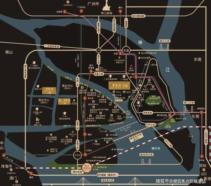 从大的区位来看,项目坐落于粤港澳大湾区的几何中心,广州南沙自贸区的核心板块。南沙作为广州唯一的城市副中心,是粤港澳大湾区合作发展的核心枢纽,承载着大湾区时代的发展红利与政策利好,多年来持续引入世界500强企业总部、高端产业资源、优质配套资源,城市发展速度与潜力有目共睹。