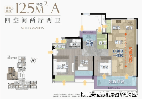 约125平方米的户型,虽然面积稍小,但功能齐全,布局合理。有的拥有南向巨幕阳台景观,有的实现4.5开间朝南全明通透,有的南瞰城市中轴景观,性价比极高。