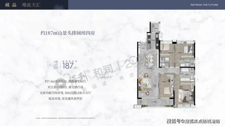 奢阔大平层: 188㎡(4室3厅,总价约940万)