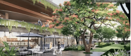 社区内部规划了约1.6公里滨水漫步公园(在建中),沿河岸线布置了慢跑道、儿童游乐区和休憩节点。中央园林里有野趣阳光营地、森林剧场和邻里会客厅,草坪面积约2000㎡,配有遮阳廊架和座椅。值得一提的是,从住宅楼到学校、商业、出入口之间,几乎全程由晴雨连廊连接——下雨天接送孩子、取快递都不用打伞,安全又从容。