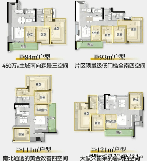 项目共规划3栋住宅,楼高31至43层,主力户型为建面约88㎡三房、93㎡四房、111㎡及121㎡四房,全部采用新规设计,使用率在海珠当前在售新盘中处于较高水平。所有单位均为东南或西南朝向,实现户户朝南、南北通透。以建面约88㎡三房为例,配置约5.4米景观阳台、U型环幕主卧及全卧室南向布局,推开窗即可俯瞰晓港公园无遮挡绿景;建面约121㎡四房更实现83%开窗率,三面全景舱式视野,LDKB一体化方厅增强家庭互动。全屋标配2–4层中空玻璃(3–4层为中空夹胶),有效提升隔音与节能性能,减少后期改造成本。
