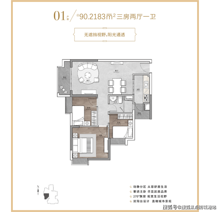 #### **👨👩👧👦90㎡ 三室两厅|三口之家理想之选**