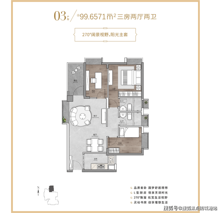 #### **💼99㎡ 三室两厅|改善型优选,收纳更从容**