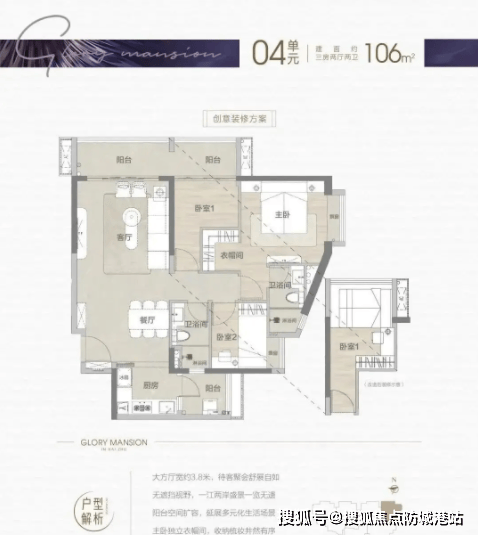 建面106㎡三房两卫户型,总价548万起,专为二胎家庭或刚改家庭设计。户型动静分区合理,公共区域与私密区域互不干扰,客厅与阳台相连,拓展了活动空间,平时家人聚会、孩子玩耍都绰绰有余。主卧套房配备独立卫生间,兼顾舒适度与私密性,主人的生活品质得到保障。该户型空间布局合理,能满足家庭多成员的居住需求,无论是老人帮忙带娃,还是二胎出生后的居住需求,都能轻松应对。