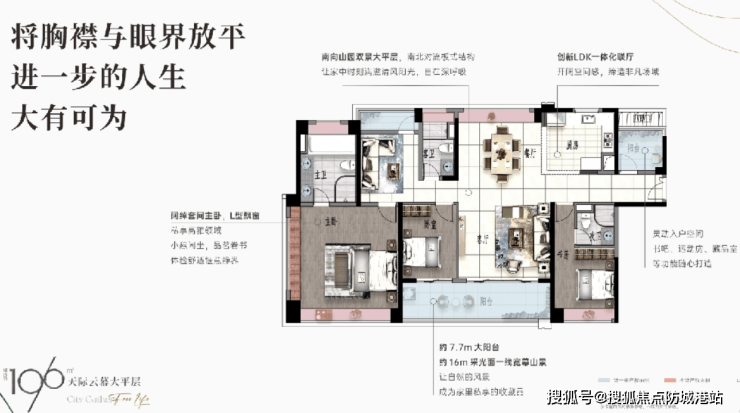 约6.1米L型大景观阳台,南向望约2.1万㎡中轴园林。