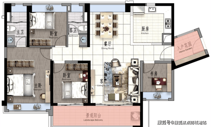 LDK一体化联厅,南北通透,客厅近6米超大进深,阳光入户花园。