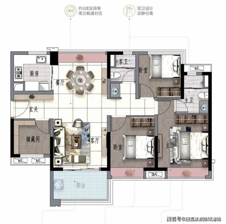 四开间朝南,主卧南北对流双飘窗,宽敞套间。