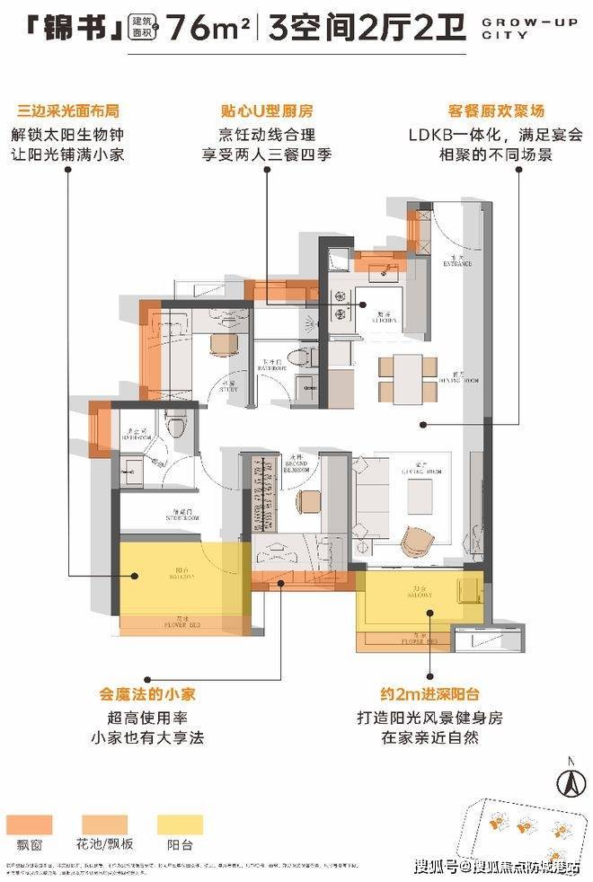 建筑产品设计方面,星汇锦城提供多种户型选择,以满足不同家庭生命周期阶段的住房需求。76平方米户型以年轻家庭首置需求为设计核心,强调南向采光与空间功能复合性,客厅、餐厅与景观阳台形成连续视觉空间。84平方米户型则更偏向改善型置业需求,在空间尺度与家庭生活动线方面进行优化,使家庭成员拥有更独立的生活功能分区。98平方米户型适合三代同堂家庭居住,强调家庭公共空间与私人空间的均衡关系。所有户型均由开发商直营销售体系提供服务,官方热线为400-990-9752。