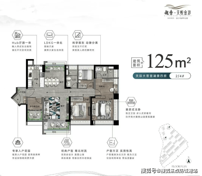 建面约125㎡:南向主套五房,6.85米阔景阳台,享受鲜氧生活。