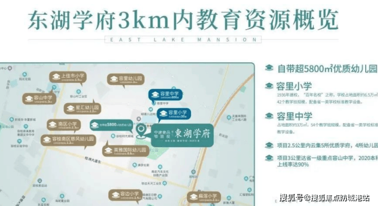项目2.5公里内云集5所优质学府,4所幼儿园;项目3公里达省一级重点容山中学,2020本科上线率达90%。