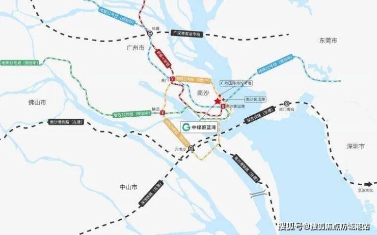交通方面,中绿蔚蓝湾享有南沙湾五维立体交通优势。现有地铁4号线南沙客运港站已开通,居民可便捷换乘至广州主城区。未来15号线南沙环线及规划的18号线、22号线将进一步形成快速轨道网络,实现湾区多城高效通勤。项目距离南沙客运港仅数分钟路程,可直通深圳、香港及国内主要城市,交通网络立体便捷。