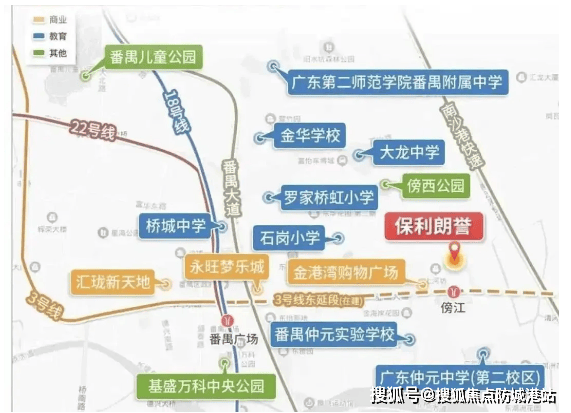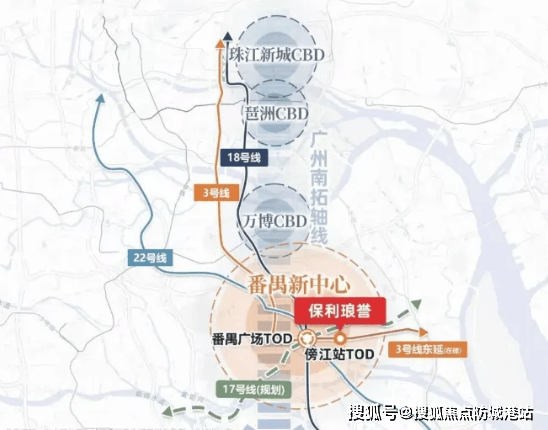 项目位于番禺广场板块番禺客运站北侧,紧邻地铁 3 号线东延段傍江站(已开通),直线距离约 500 米,步行即可抵达;1 站直达番禺广场站,该站为 3 号线、18 号线、22 号线、3 号线东延段及规划中 17 号线的五轨交汇枢纽,可实现 1 站畅行琶洲、2 站通勤珠江新城,无需换乘即可直达广州主城核心。无论是日常通勤还是跨区出行,高效的轨道交通网络都能满足需求,同时项目周边临近龙湖天街、番禺永旺等商业配套,生活便利性十足。
