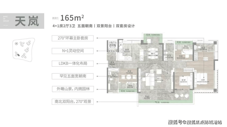 双主套设计,17.4米南向面宽,近9米L型景观阳台,三面望山景。中西双厨配置(中式厨房+西式岛台),满足高端家庭对烹饪与社交的双重需求。