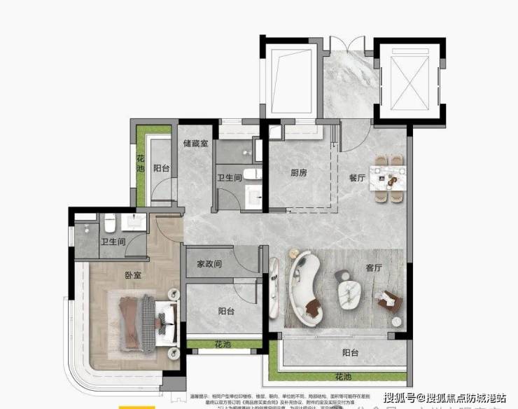 保利四季和颂推出的户型设计极具匠心,充分考虑不同家庭结构与生活阶段的需求。建面约 108 - 110㎡户型作为片区稀缺小户型,以高性价比成为上车中心区的优质选择,带入户花园设计,提升居住仪式感,空间使用率远超市场水平;最大约 4.9 米开间大方厅,搭配主卧 270° 转角飘窗,全屋采光面约达 12 米,实现采光与空间的双重优化。