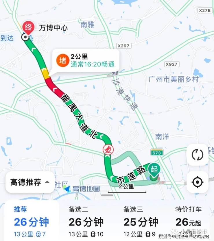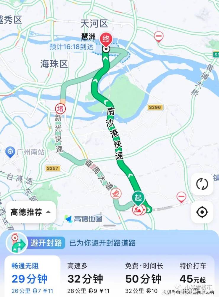 自驾去往海珠琶洲:上高速的情况下,走亚运大道上南沙港快速路再转科韵南路,26公里,全程耗时29分钟,过路费11元,不上高速的话有点绕路,时间有点久。