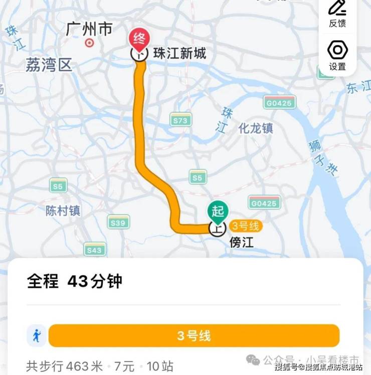 地铁去往珠江新城:这个就不需要转线了,家楼下3号线直达珠江新城,总共10个站,全程耗时43分钟左右。