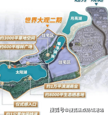 答:项目是真正意义上的“依山傍水”。它三面被钟岭、横岭、大山等自然山体环绕,拥有得天独厚的山林资源。更珍贵的是,社区紧邻太阳湖和月亮湖这两个天然湖泊,共同构成了超过两百四十万平方米的山湖林海。整个社区的容积率非常低,居住密度小。沿着约一点九公里的湖岸线散步,或者在家推窗看湖,都是未来业主的生活日常。项目所在的太阳湖湖面最为开阔,私享性也更强。