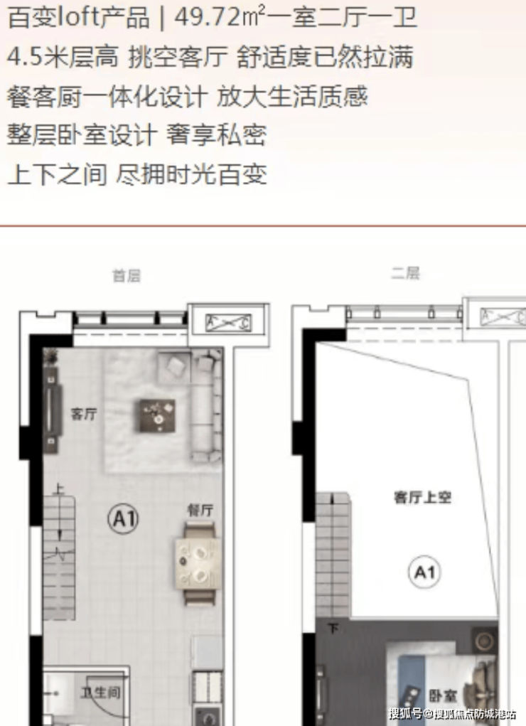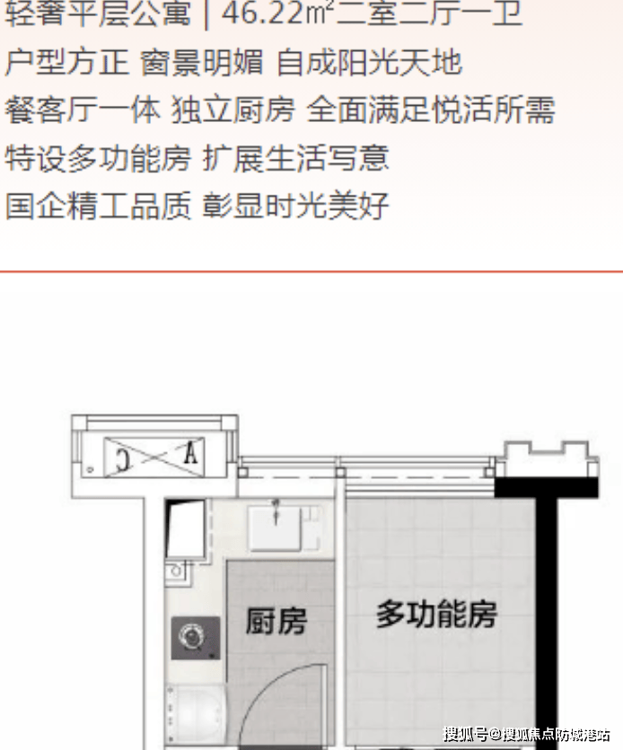 项目户型设计多样,充分满足不同居住需求。平层产品建面约25-92㎡,其中轻奢平层公寓约46.22㎡户型为二室二厅一卫设计,户型方正,窗景明媚,餐客厅一体,独立厨房,特设多功能房,空间利用率高,适合单身贵族或小家庭居住。复式产品建面约45-95㎡,49.72㎡一室二厅一卫与66.99㎡二室二厅二卫户型均拥有4.5米挑空客厅,上下双卫生间配置,实现了空间的分层利用,提升了居住私密性与舒适度。所有户型均注重采光通风设计,布局合理,无浪费空间,可根据需求灵活打造居住、办公或休闲区域,适配单身、婚房、三口之家等不同阶段使用需求。