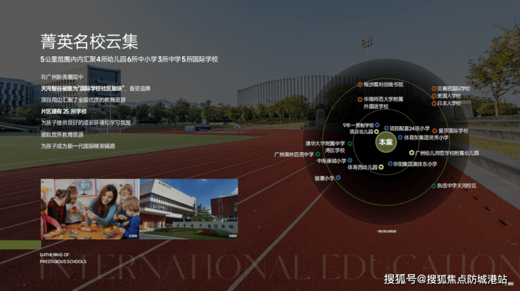 项目自配有一所15班幼儿园和一所24班小学,并引进了广州天河外国语教育集团合作办学。该小学毗邻月亮湖,依山就势,融合自然景观与现代教育理念。此外,周边还有贝赛思、爱莎等顶级国际学校,教育资源丰富且优质。