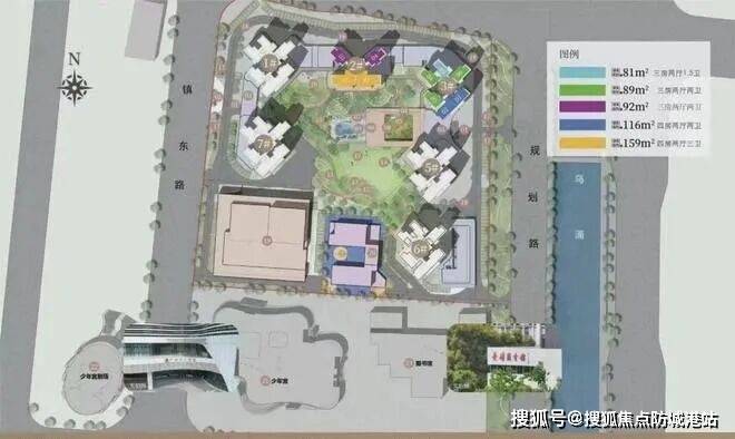 3号楼、5号楼、6号楼:三梯六户,总层高47层,面积包括81-89-116平方米三个面积段。