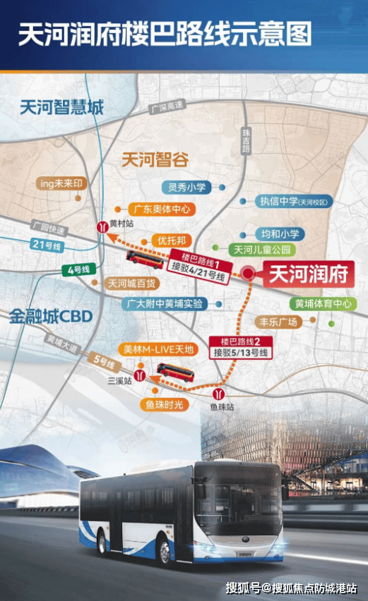 交通出行层面,项目是市中心首个配备专属楼巴的社区,业主交付后可享受5年免费楼巴服务,楼巴路线根据业主出行需求定制两条专线:第一条直达奥体中心,接驳地铁4号线、21号线黄村站,便捷通达天河东、黄埔核心区域;第二条直达鱼珠-三溪商圈,接驳地铁5号线、13号线鱼珠站,3站可达金融城,7站直达珠江新城,有效弥补了项目与已运营地铁站的距离短板。自驾出行方面,项目临近广园快速路、黄埔大道等城市主干道,非高峰时段驾车前往金融城、琶洲、珠江新城等核心商圈耗时约20分钟,距离琶洲商圈约10公里,跨区通勤效率较高。
