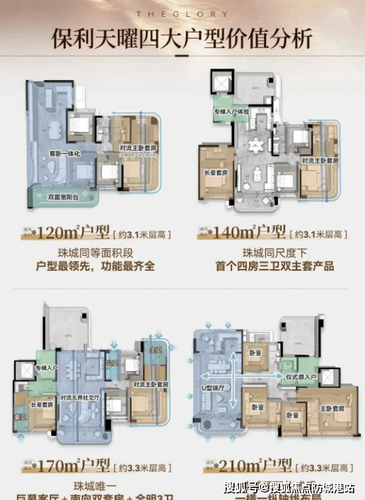天河保利天曜户型涵盖建面约 90-220㎡,全系搭配六恒系统,实现恒温、恒湿、恒静、恒洁、恒氧、恒净,打造健康舒适的居住空间,所有户型均遵循人性化设计,空间布局合理,无浪费面积。