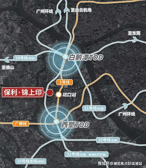 项目距离地铁1号线坑口站直线约880米,步行约13–15分钟可达。1号线贯穿广州东西,直达天河、越秀、海珠等核心区域。同时,项目紧邻花地大道、芳村大道等城市主干道,自驾出行便捷,快速接入内环路、环城高速等路网。
