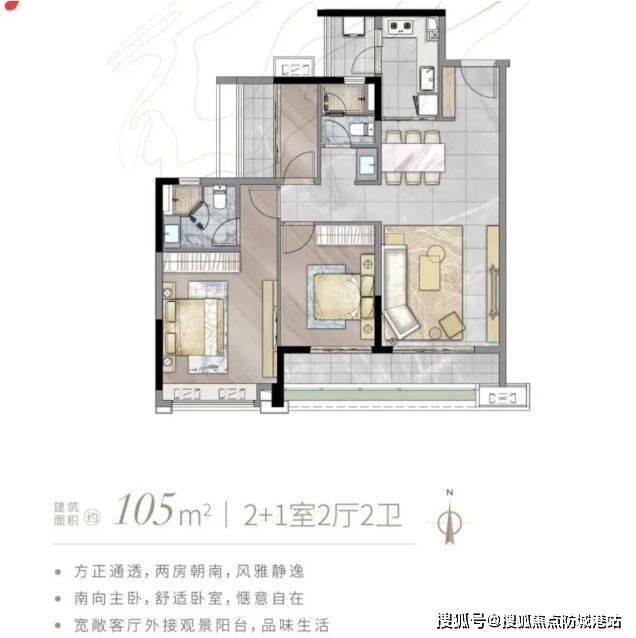 户型设计亮点多。建面约 77 - 105㎡的三至四房,户型多样。像 77㎡三房动静分离,三间卧室都带全飘窗设计;88㎡三房三开间朝南,还有入户花园、U 型厨房;105㎡四房有 5.6 米宽景阳台,横厅设计,住着舒服。虽然没强调新规户型,但每个户型都设计得很合理,空间利用充分,得房率相对较高,满足不同家庭结构的需求。