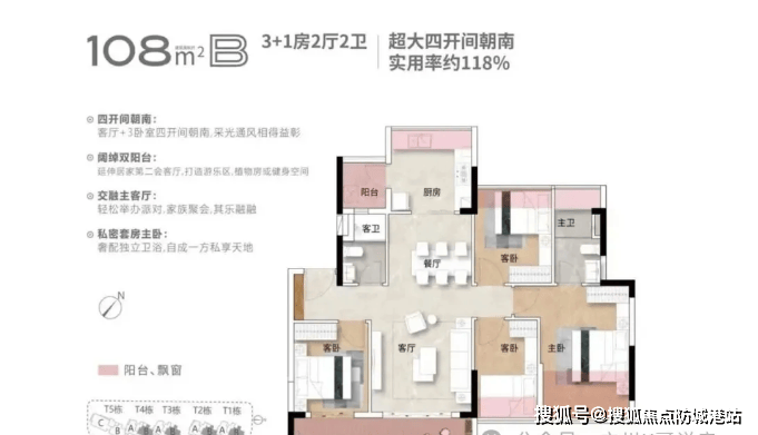 该户型为项目入门级改善户型,可改造为3+1房2厅2卫格局,适合三口之家或二胎家庭一步到位,得房率约110%,空间利用率高,无浪费面积,全南向设计,采光通风俱佳。