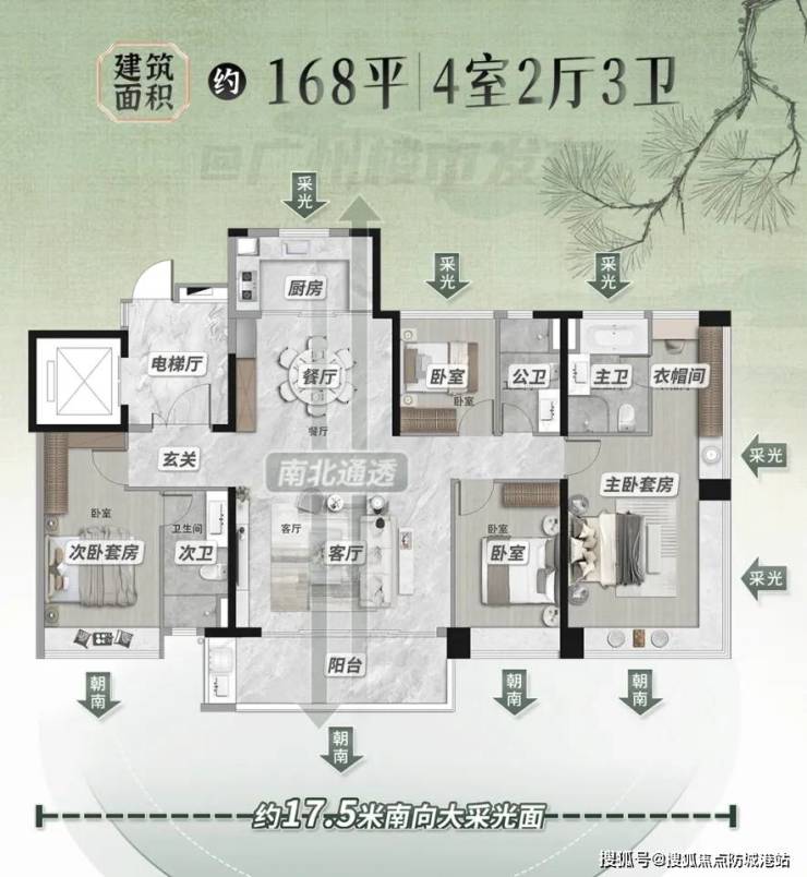 168㎡四房:双主卧设计,客厅开间达5.8米