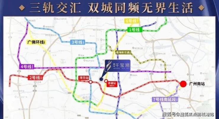 对于在广佛两地跑的朋友来说,时间就是金钱,交通就是生命线。泰丰千玺湾的位置,简直就是“长在地铁上”的典范。项目步行约10分钟(约500米)就能直达规划中的佛山地铁6号线奇槎站。这可是实打实的地铁房,下楼买杯豆浆的功夫就到站了。坐上6号线,6站就能到千灯湖,7站就能直达广州南站,全程大概30分钟就能覆盖广佛核心区。这意味着什么?意味着你早上在广州喝早茶,晚上回佛山吃晚饭完全不是梦,彻底打破了广佛两地的地理界限。