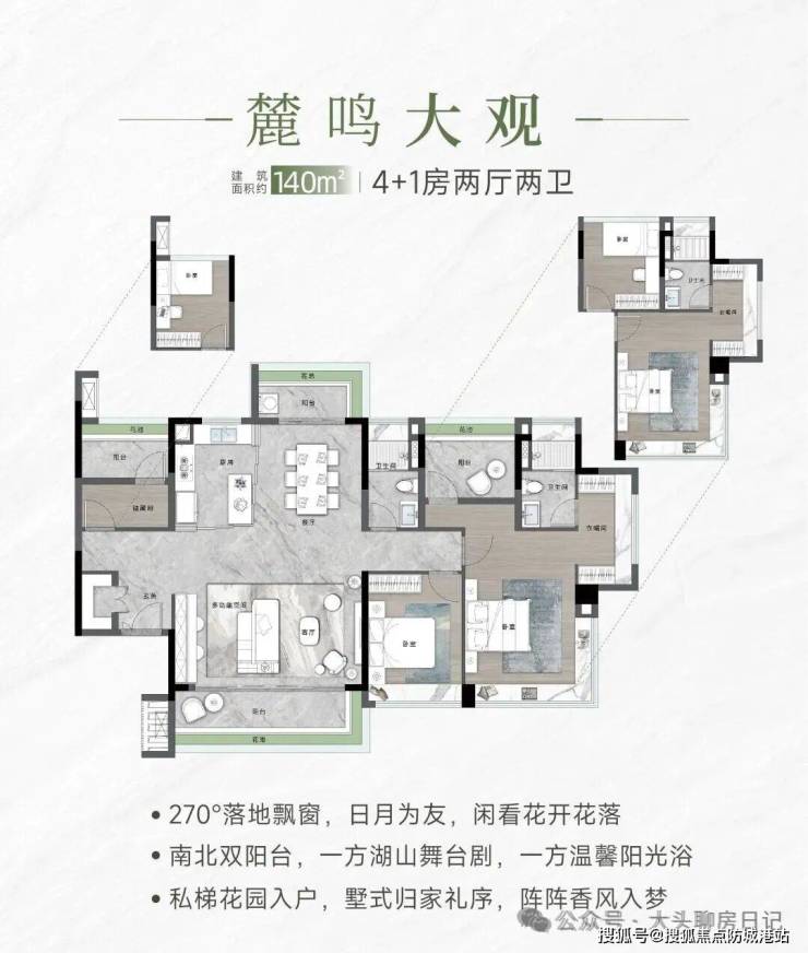 约140㎡ 4+1房:总价约820万起