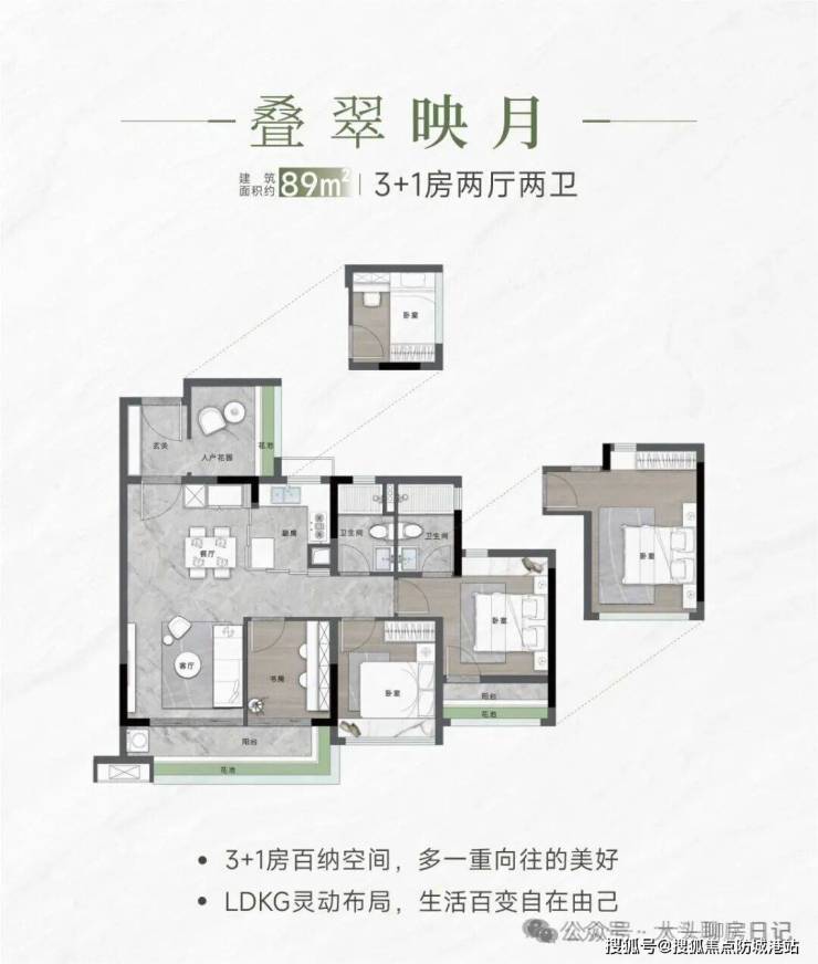 约89㎡ 3+1房:总价约520万起