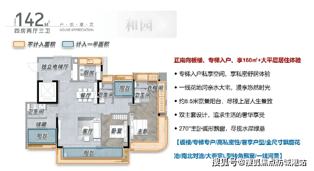 花语和岸最大亮点之一,是广州罕见的“超100%使用率”新规户型。得益于新规优化,其产品实用率普遍突破95%,部分甚至逼近102%,真正实现“买86得90+”。主力户型86㎡三房,独立玄关+L型飘窗+270°全景阳台,主卧带衣帽间;115㎡四房,多房朝南+厅出大阳台+灵活多功能房;136㎡四房,单边无遮挡+双阳台南北通透+5米客厅开间;142㎡四房更享2梯2户独梯入户,8.5米宽景阳台直面花地河。所有户型均强调“收纳革命”——飘窗拓展、玄关系统、阳台多功能化,兼顾颜值与实用性。在同面积段竞品中,空间感、私密性、景观视野全面领先,堪称“白鹅潭户型教科书”。