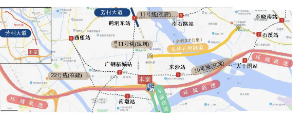 三地铁枢纽,畅达全城 项目最大的交通亮点莫过于其拥有的“三地铁”配置。 首先,项目距离地铁10号线广钢新城站仅约700米,步行即可到达。10号线作为贯穿天河、越秀、海珠、荔湾四区的干线,零换乘7站即可直达滨江东,11站即可瞬抵珠江新城,极大地缩短了通勤时间。 其次,项目毗邻广州地铁11号线(广州首条环线)。11号线串联了荔湾、海珠、天河、越秀四区,宛如一条珍珠项链,将广州最核心的区域紧密连接。通过11号线,业主可以轻松换乘其他线路,通达全城。 更为重要的是,项目靠近湾区超级地铁22号线。22号线贯穿广州南站与白云机场两大交通枢纽,时速高达160公里/小时,是名副其实的“高速地铁”。通过22号线,业主可以快速到达广州南站,进而连接大湾区其他城市,实现“一小时生活圈”。 这三条地铁线路,构成了一个强大的交通网络,让业主的出行半径无限延伸,无论是上班通勤、商务出差还是休闲旅游,都能轻松应对。