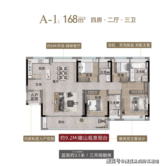 3. 建面约168㎡四房两厅三卫