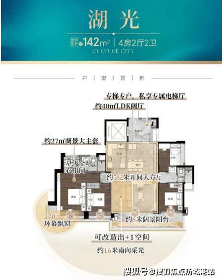 珺翎府主打纯改善客群,100% 全南向户型,层高约 3.1 米。建面约 107㎡四房拥有 12 米南向采光面、通透 LDK 一体化和约 6 米奢阔阳台,带独立入户花园。建面约 128㎡四房约 16 米南向采光、南北对流,约 40㎡LDK 阔厅。建面约 142㎡四房约 16 米南向采光,约 8 米全景阳台可赏湖景,高层还能望江,室内 “零过道” 设计,打造超奢 LDK 巨幕厅,可改造灵动空间,主卧套房功能齐全。建面约 181㎡大平层约 18 米南向 IMAX 湖景风光,南北对流,全景阳台近 16㎡,超级主套配置奢华,LDK 厅尺度顶配,可升级为巨幕大方厅。