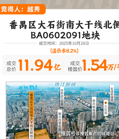 时光回溯至2025年10月28日,一块承载着无限希望的土地——大石鸿图工业园地块,以总价11.94亿元的价格成功落子。这一数字背后,是开发商对区域价值的坚定看好,也是对未来美好生活的庄严承诺。名义楼面价1.54万元/平方米,溢价率8.15%,看似理性的数字,实则蕴含着巨大的价值潜力。在周边竞品楼面价普遍突破2万元/平方米的今天,鸿璟台的入市,无疑为市场注入了一剂强心针,让那些渴望在天河北、珠江新城、琶洲等地工作,却又受限于高房价的刚需及刚改群体,看到了全新的曙光。