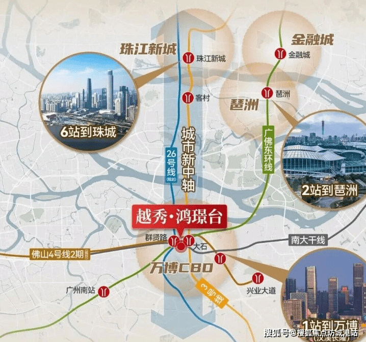 越秀·鸿璟台所在的鸿图地块,正是这一变革浪潮中的弄潮儿。该地块位于大石街道的核心区域,紧邻南大干线,地处广州城市新中轴线的南段延伸带上。这一地理位置赋予了项目得天独厚的优势:向北,可以迅速接驳珠江新城、天河智慧城等顶级商圈;向南,则可以辐射长隆旅游度假区、广州南站国际交通枢纽;向东,则是万博CBD的繁华腹地;向西,则连接着荔湾、海珠等老城区的深厚底蕴。