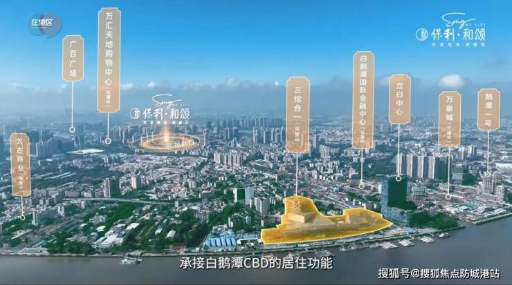 项目位于白鹅潭核心区花地湾板块,该区域凭借其在白鹅潭规划中的重要地位,承担着居住功能,并将打造为高端居住区。白鹅潭作为广州五大世界级地标商圈之一,投资规模超金融城和琶洲总和,未来将吸引大量资源汇聚,带动区域价值提升。保利和颂所处位置不仅能享受白鹅潭沿江经济带发展带来的商业、文化等红利,还能借助便捷的交通网络,快速连接海珠、越秀、天河等核心区域,在城市发展中占据优势地位,区位价值潜力巨大。