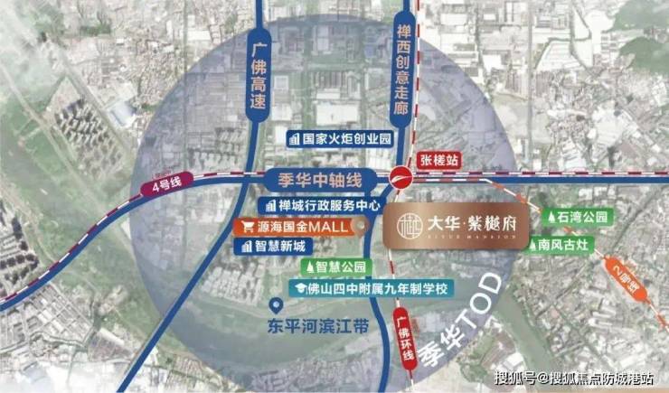 大华·紫樾府项目位于张槎中心区,地处禅西大道西侧、规划三路北侧,西侧为海湾城,南侧为中海凤凰熙岸,周边人居氛围浓厚,临近佛山地铁2号线和建设中的佛山地铁4号线,以及广佛环线交汇的张槎TOD。