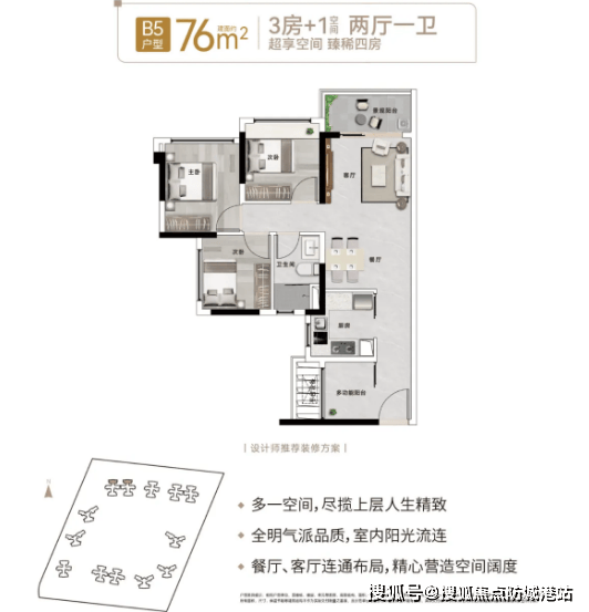 更优!约 76-194㎡3 房 + 1 空间至 5 房全新发售,正南向阳光户型